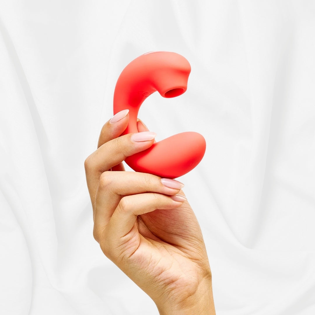 Glow est un jouet sexuel à double stimulation qui offre à la fois vibration interne et stimulation clitoridienne par pulsations d’air.